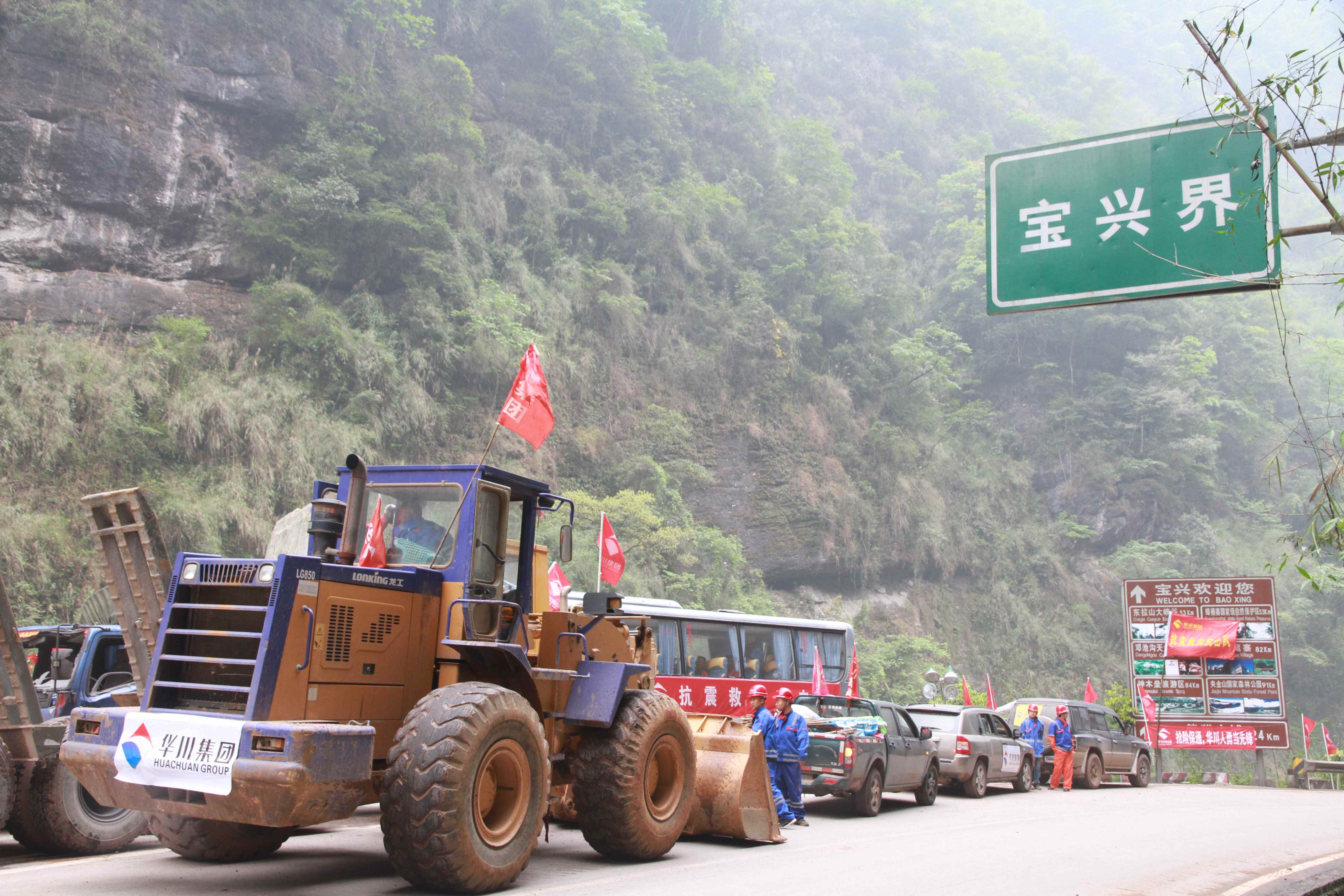 (華川集團搶險救災隊伍人員在“4.20”救災一線)(集團董事長謝應文在寶盛大橋搶險加固現場接受采訪) (華川集團在“4.20”抗震救災一線)